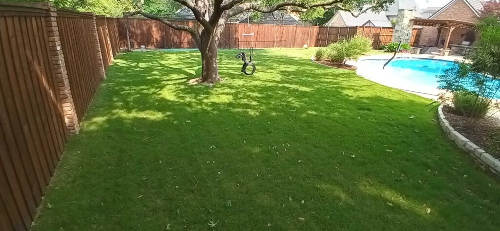 In North Texas, Fescue is not the ideal lawn choice but serves a purpose in densely shaded areas where warm-season grasses decline. Fescue must be overseeded every fall, as it usually burns out in the hottest late summer months when temperatures are above 95 degrees.